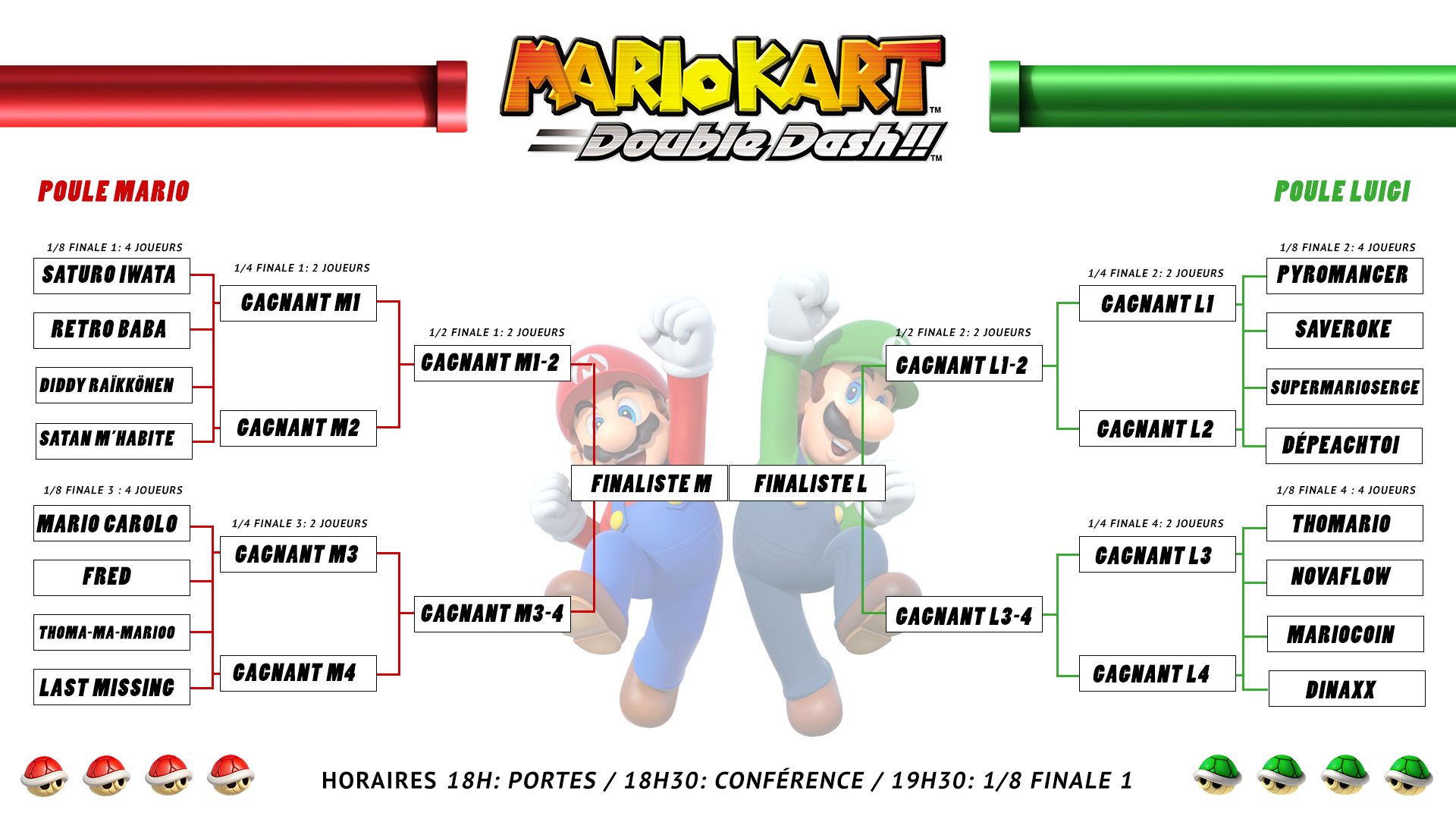 19h30: Début du tournoi Mario Kart Double Dash